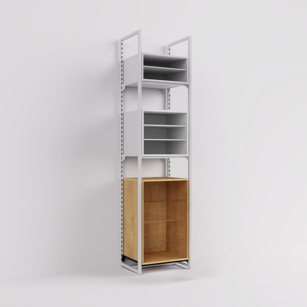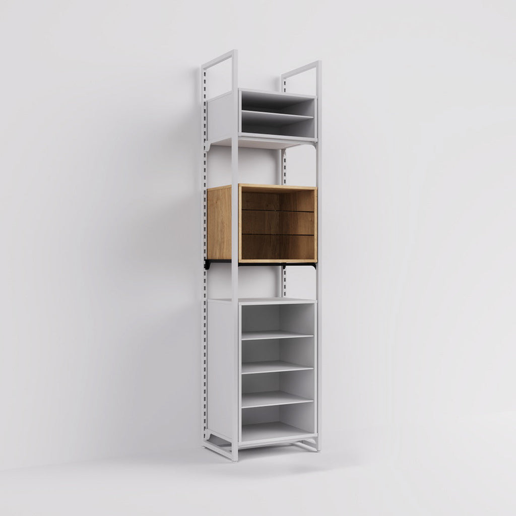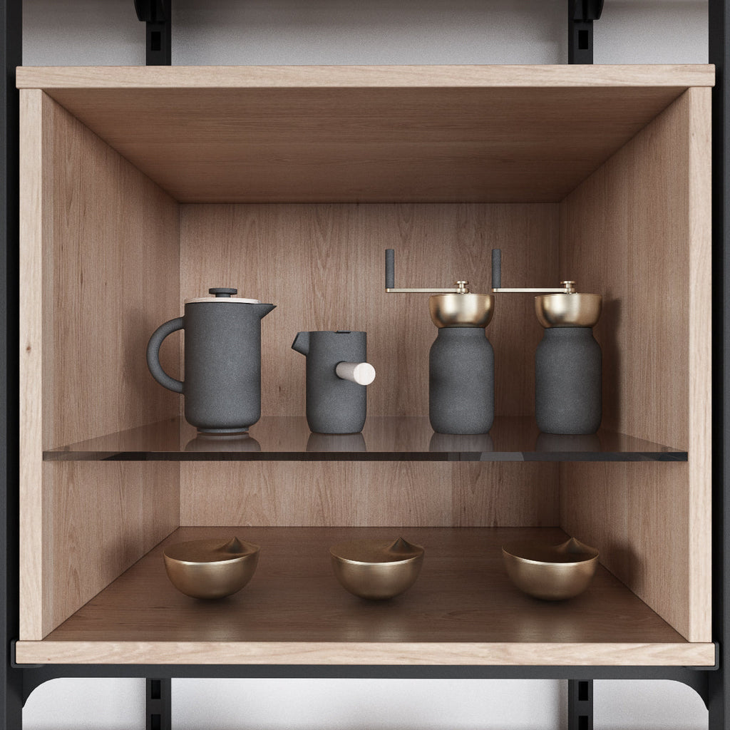 The Addison presentation box ensures a clear and stylish presentation. Equipped with two shelf brackets and a support profile, it can be suspended at any desired height in the Addison shelving system in 5 cm / 1.97" increments.