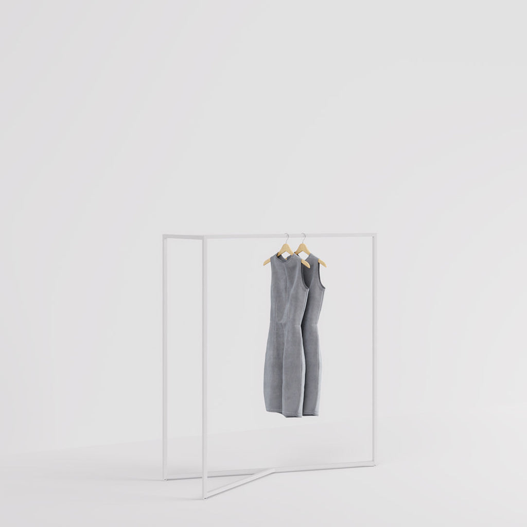 With the Magic clothing rail T-XL, you have a freestanding rack from the series Slimline. Its simple, minimalist design in combination with the striking shape of a T captivates every viewer. Transform your center space into an attractive sales area and give your showroom or pop-up store that certain something with the Magic Rail T clothing rail. The clothing rack is completely welded and therefore very stable. The delivery takes place on a one-way pallet. All of our clothing rails are equipped with adjustable feet to compensate for any unevenness in the floor.