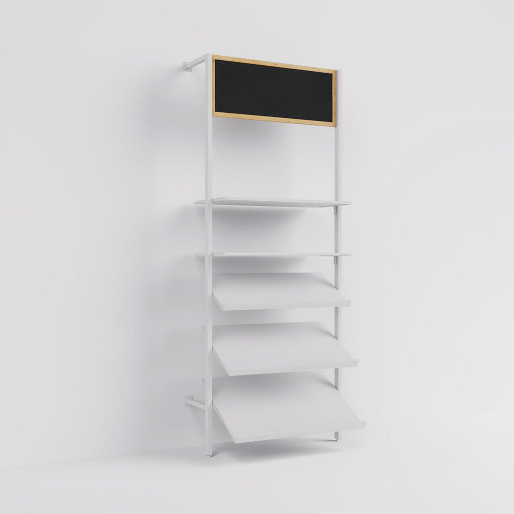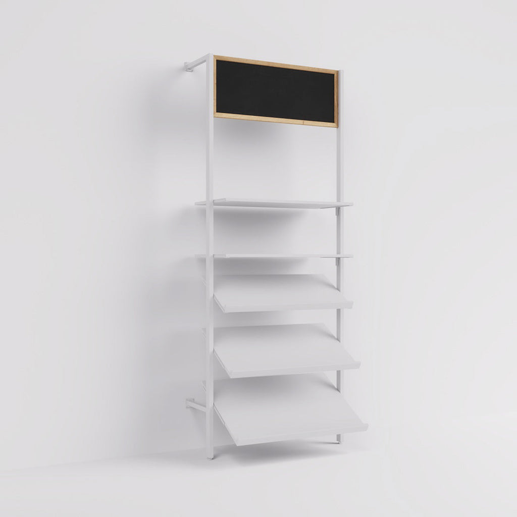This chalkboard is made of high-quality 8 mm / 0.31" thick MDF and has a wooden frame on the outside. Equipped with hanging brackets, the 400 mm / 15.75" high chalkboard can be hung into the Ceres shelving system at the desired height without tools.