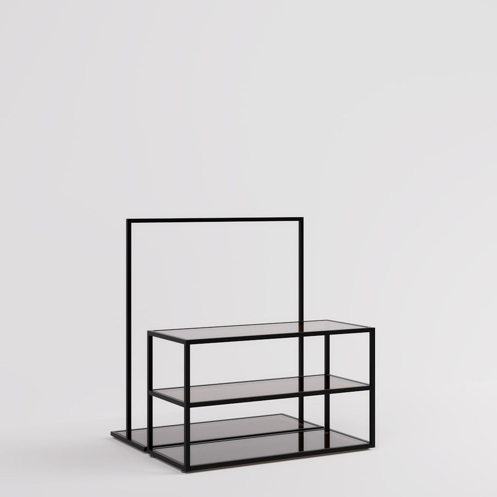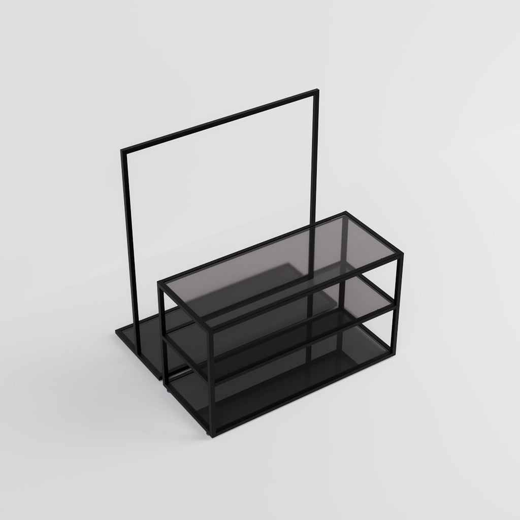 Display Table & Clothing Rail Como, black with glass shelves