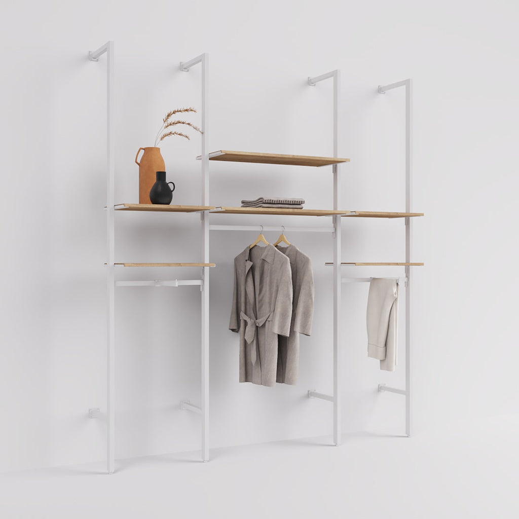 Elegant and spacious, Ceres Fashion Style 3 in white is where form and function meet. This stylish unit has shelves and back rails with front arms that can be raised, lowered and rearranged to suit you. Choose from two heights and add extra modules and fittings for a completely customised unit.