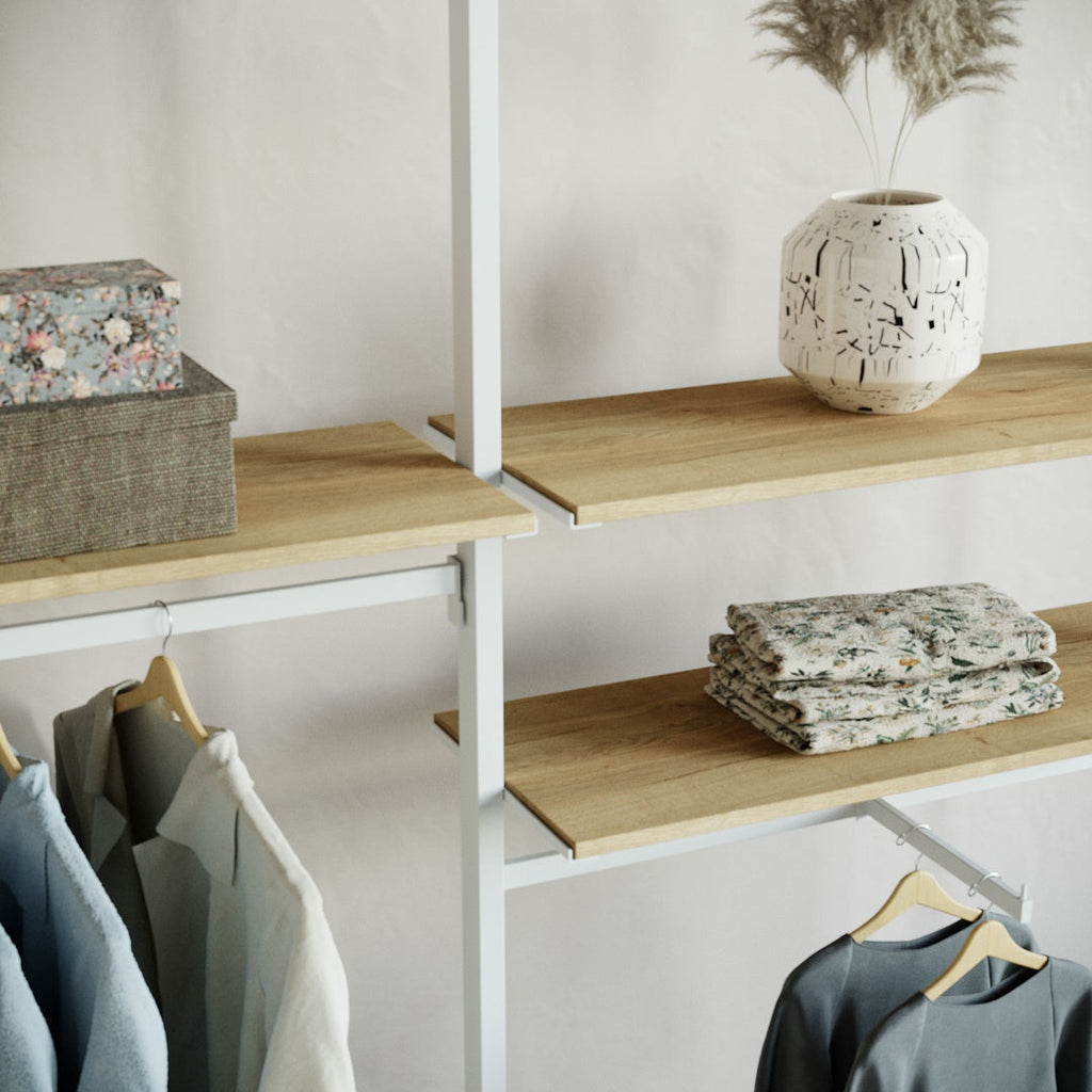 The minimal look of Ceres Fashion Style 5 in white lends itself to high-end fashion displays, and its height-adjustable shelves and rails make it so easy to refresh the look with the seasons. It comes in two heights and can be expanded with extra rails, front arms and other modules and fittings.