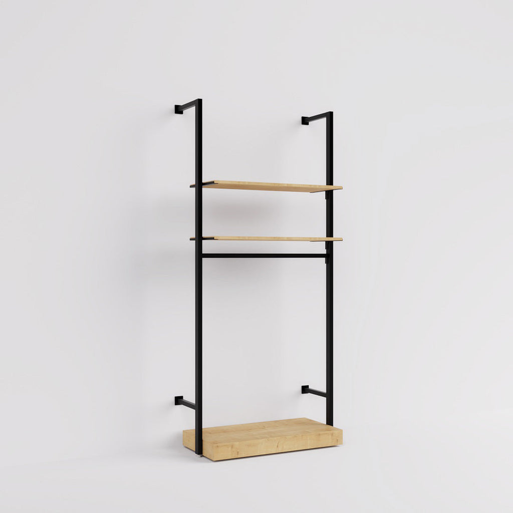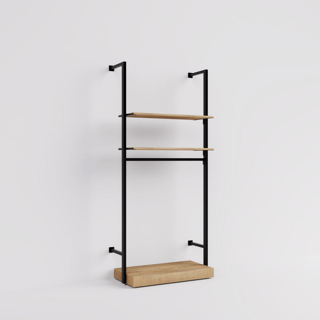 With shelves, a hanging rail and a pedestal, ultra-simple Ceres Fashion Style 1 in black is the ideal all-in-one small-space shelving solution. Bold and modern, it’s available in two heights, and the shelves and hanging rail are height-adjustable. Make it your own by adding extra modules and fittings.