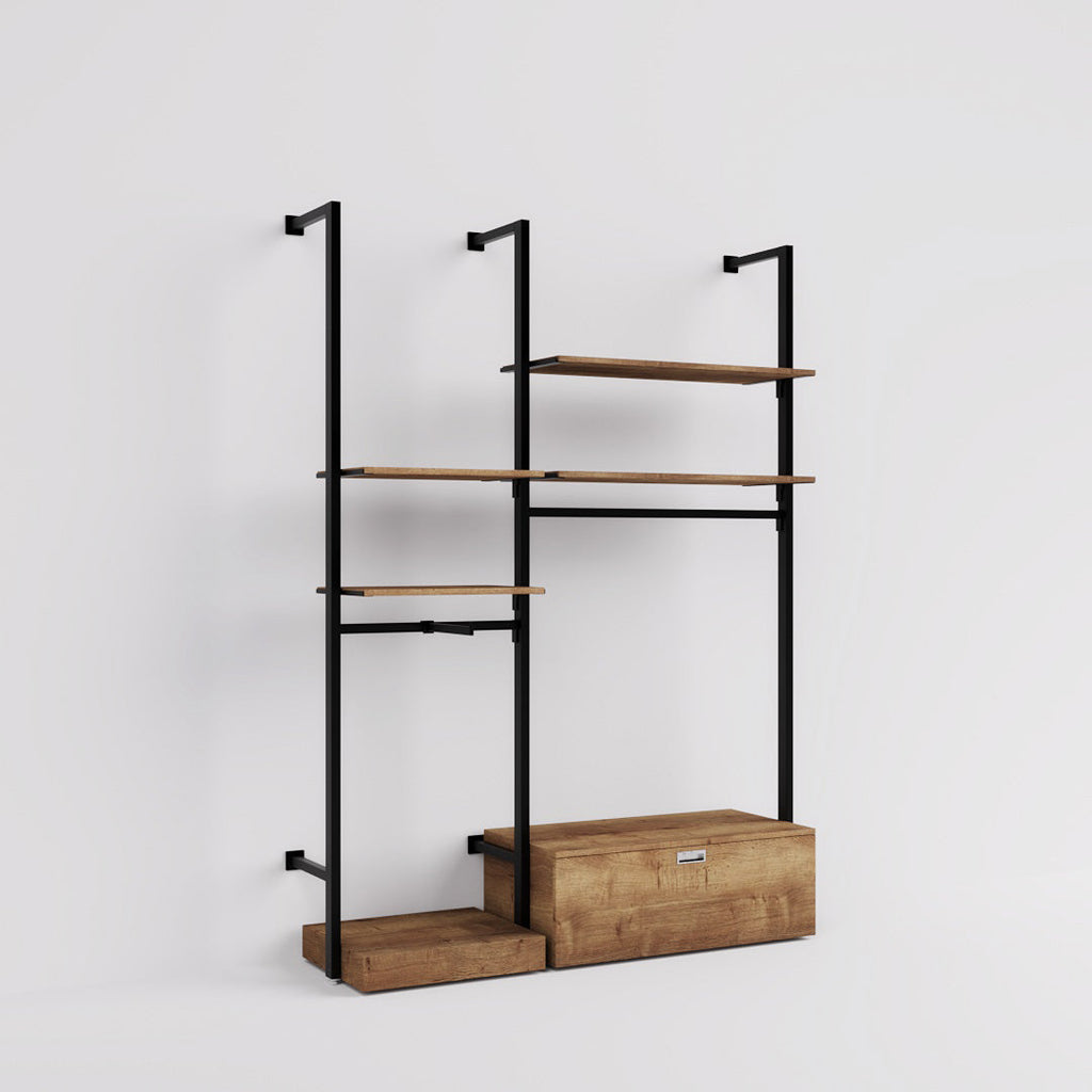Offered in two heights, Ceres Fashion Style 2 in black adapts to fast-moving fashion trends in bold style. With its height-adjustable shelves and clothing rails plus front arm, pedestal and storage box, it can be reconfigured over and over again. You can even add extra modules and fittings.
