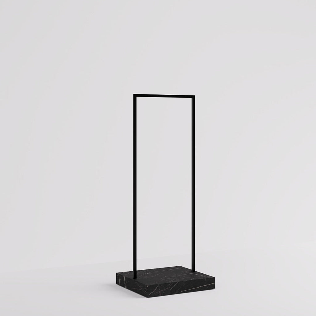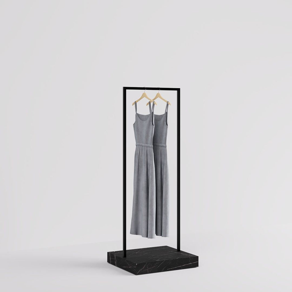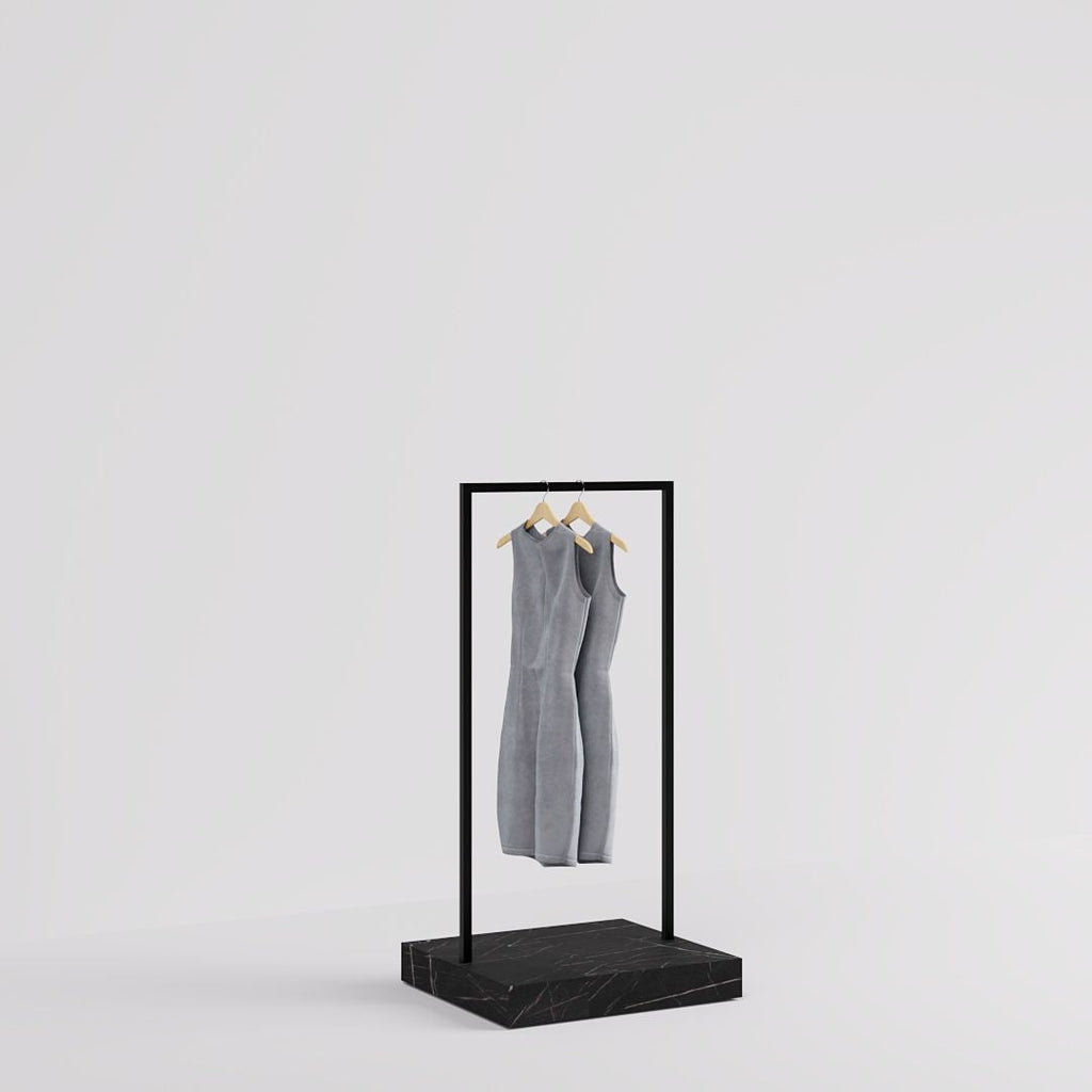 The elegant Kansas Clothes Rail seamlessly complements textile and fashion store interiors, whether used individually or with other rail and rack systems. Its sleek linear design beautifully showcases clothing collections, while the marble look base adds an instant touch of luxury. The base can also be customized with a variety of finishes and colors.
