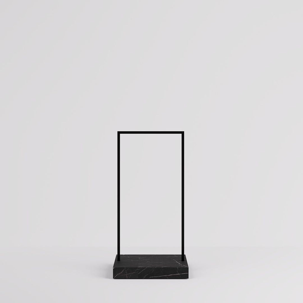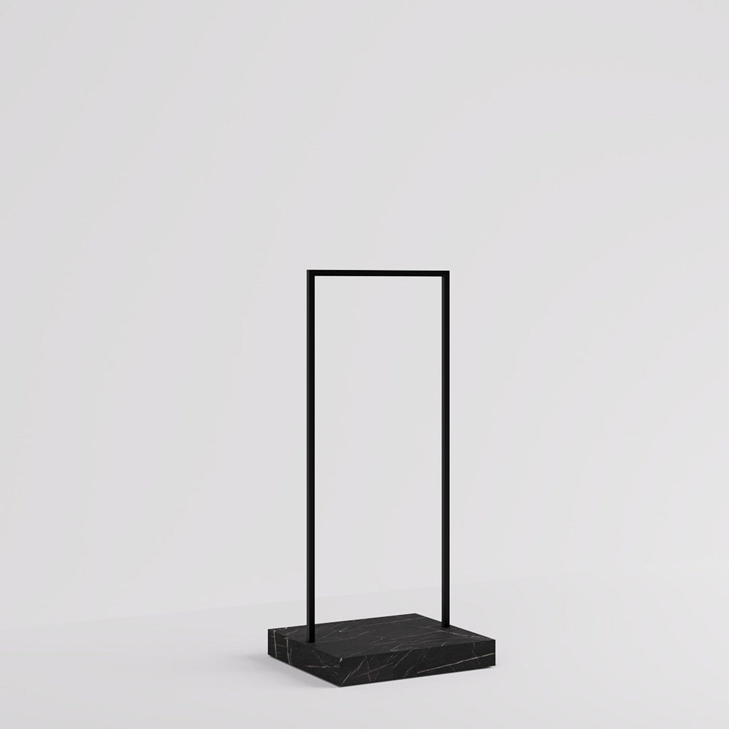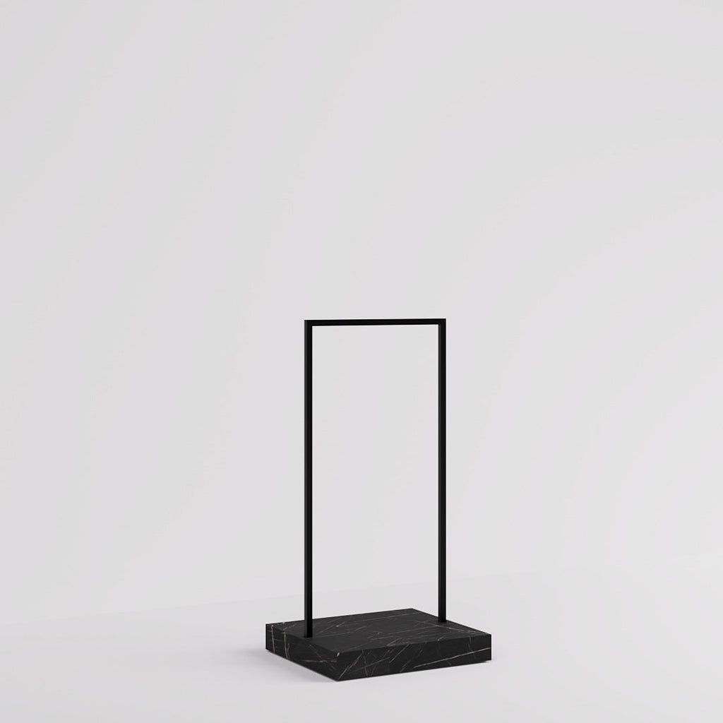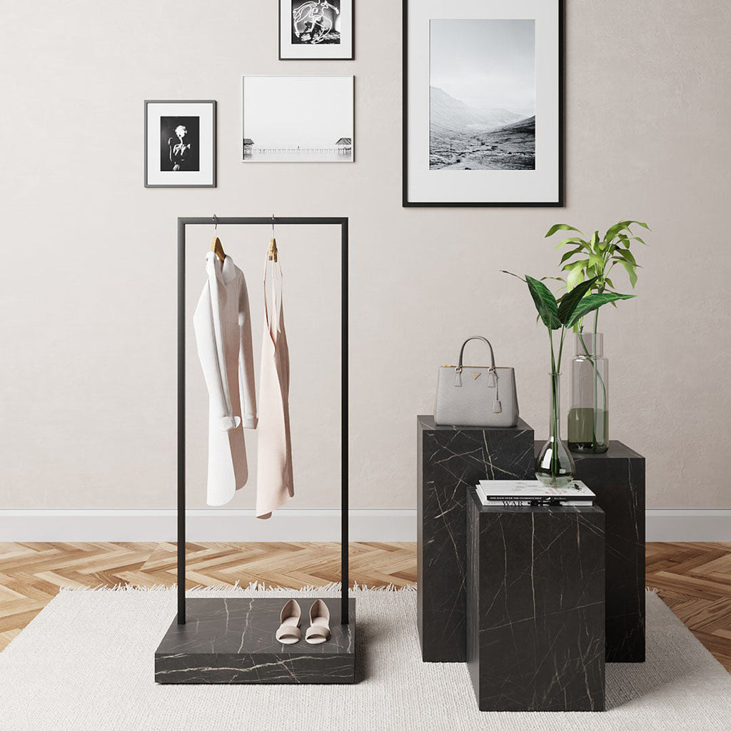 The elegant Kansas Clothes Rail seamlessly complements textile and fashion store interiors, whether used individually or with other rail and rack systems. Its sleek linear design beautifully showcases clothing collections, while the marble look base adds an instant touch of luxury. The base can also be customized with a variety of finishes and colors.
